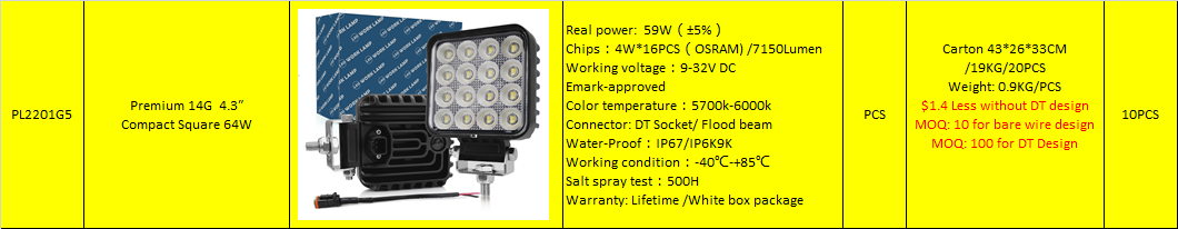 Real power: 59W(±5%) Chips:4W*16PCS(OSRAM) /7150Lumen