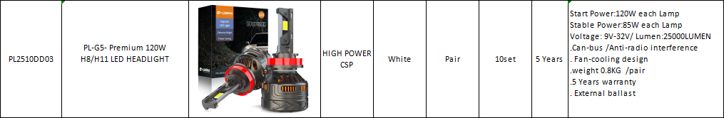 PL-G5- Premium 120W H8/H11 LED HEADLIGHT