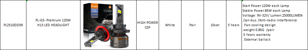 PL-G5- Premium 120W H13 LED HEADLIGHT