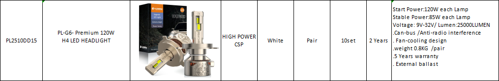 PL-G6- Premium 120W H4 LED HEADLIGHT