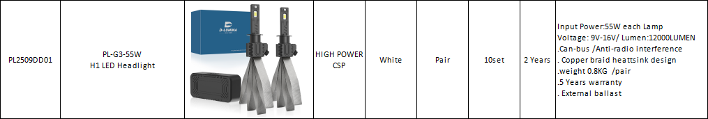 Input Power:55W each Lamp Voltage: 9V-16V/ Lumen:12000LUMEN .Can-bus /Anti-radio interference . Copper braid heattsink design .weight 0.8KG /pair .5 Years warranty . External ballast