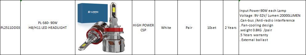PL-S60- 90W H8/H11 LED HEADLIGHT