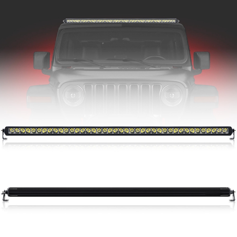 Theoretical Power: 200W Real Power: 108W Working voltage: 9-32V DC Chips: 5W*40PCS OSRAM Chips/6000k Beam: Driving beam/11800Lumen Brakcet: Backside+Both side IP68/IP69K Water-proof/5 years warranty Emark Approved With a set DT connector