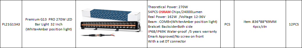 Premium G13 PRO 270W LED Bar Light 32 Inch