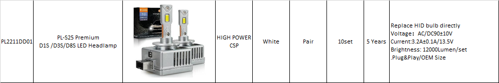 replace HID bulb directly Voltage:AC/DC90±10V Current:3.2A±0.1A/13.5V Brightness: 12000Lumen/set .Plug&Play/OEM Size