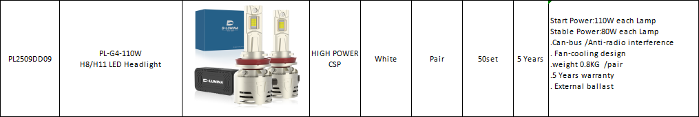 Start Power:110W each Lamp Stable Power:80W each Lamp .Can-bus /Anti-radio interference . Fan-cooling design .weight 0.8KG /pair .5 Years warranty . External ballast
