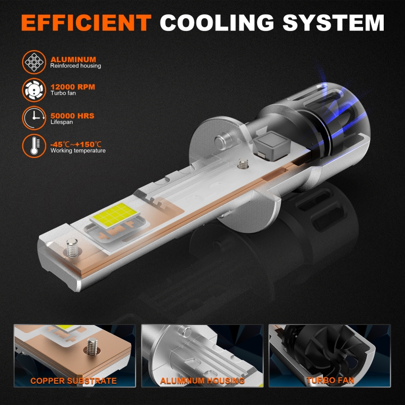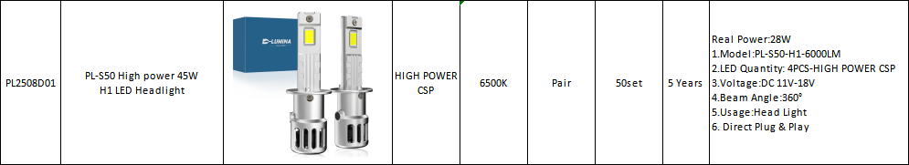 Real Power:28W 1.Model:PL-S50-H1-6000LM 2.LED Quantity: 4PCS-HIGH POWER CSP 3.Voltage:DC 11V-18V 4.Beam Angle:360° 5.Usage:Head Light 6. Direct Plug & P
