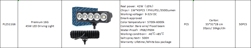 Real power: 42W(±5%) Chips:1W*45PCS(PHILIPS) /3500Lumen