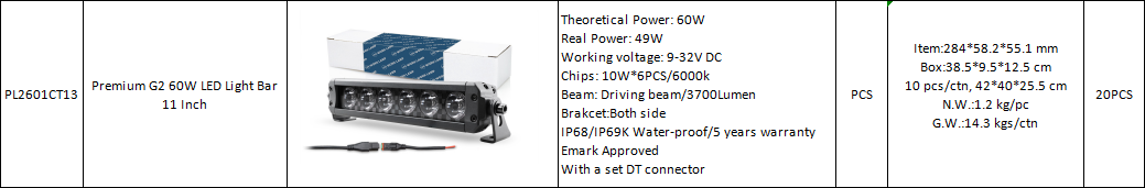 Premium G2 60W LED Light Bar 11 Inch