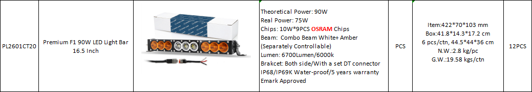 Premium F1 90W LED Light Bar 16.5 Inch