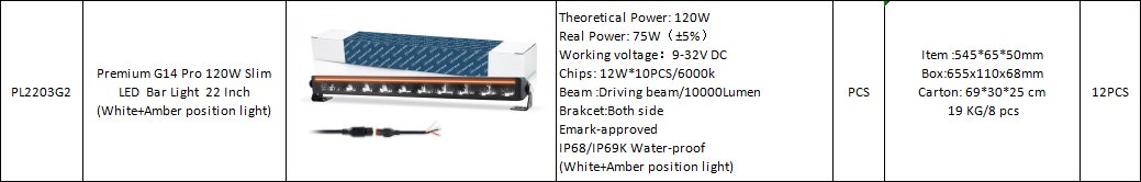 Premium G14 Pro 120W Slim LED Bar Light 22 Inch (White+Amber position light)